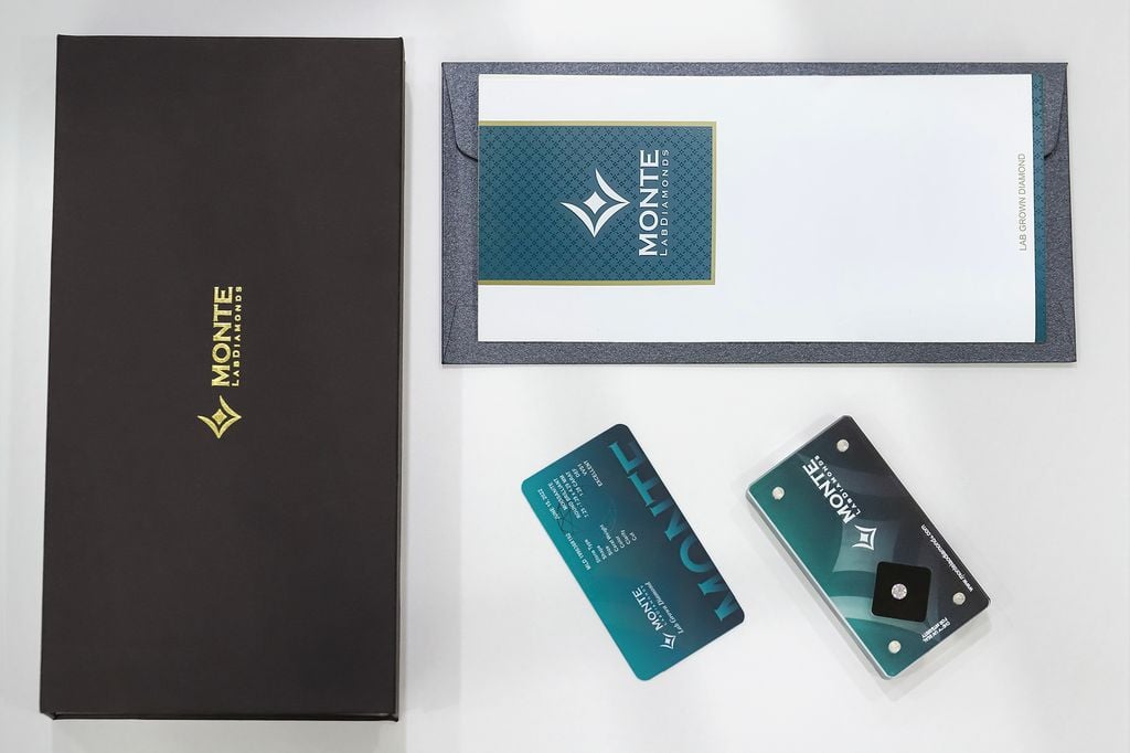 - Các sản phẩm kim cương nuôi cấy (Monte Lab Grown Diamond) và Monte moissanite DEF đều có đầy đủ bộ sản phẩm (bao gồm hộp đựng bộ sản phẩm, hộp đựng viên đá có tem chống hàng giả, phong bì đựng giấy và thẻ kiểm định, giấy certificate, thẻ bảo hành vật lý).