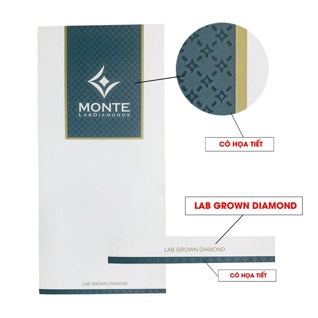 - Monte Lab Grown Diamond (kim cương nuôi cấy Monte) : Kim cương nhân tạo cao cấp, được nuôi cấy trong phòng thí nghiệm với thành phần và tính chất vật lý giống hoàn toàn với kim cương tự nhiên. Đây là lựa chọn hoàn hảo cho những ai yêu thích vẻ đẹp vĩnh cửu của kim cương nhưng mong muốn một giải pháp kinh tế và thân thiện với môi trường hơn.