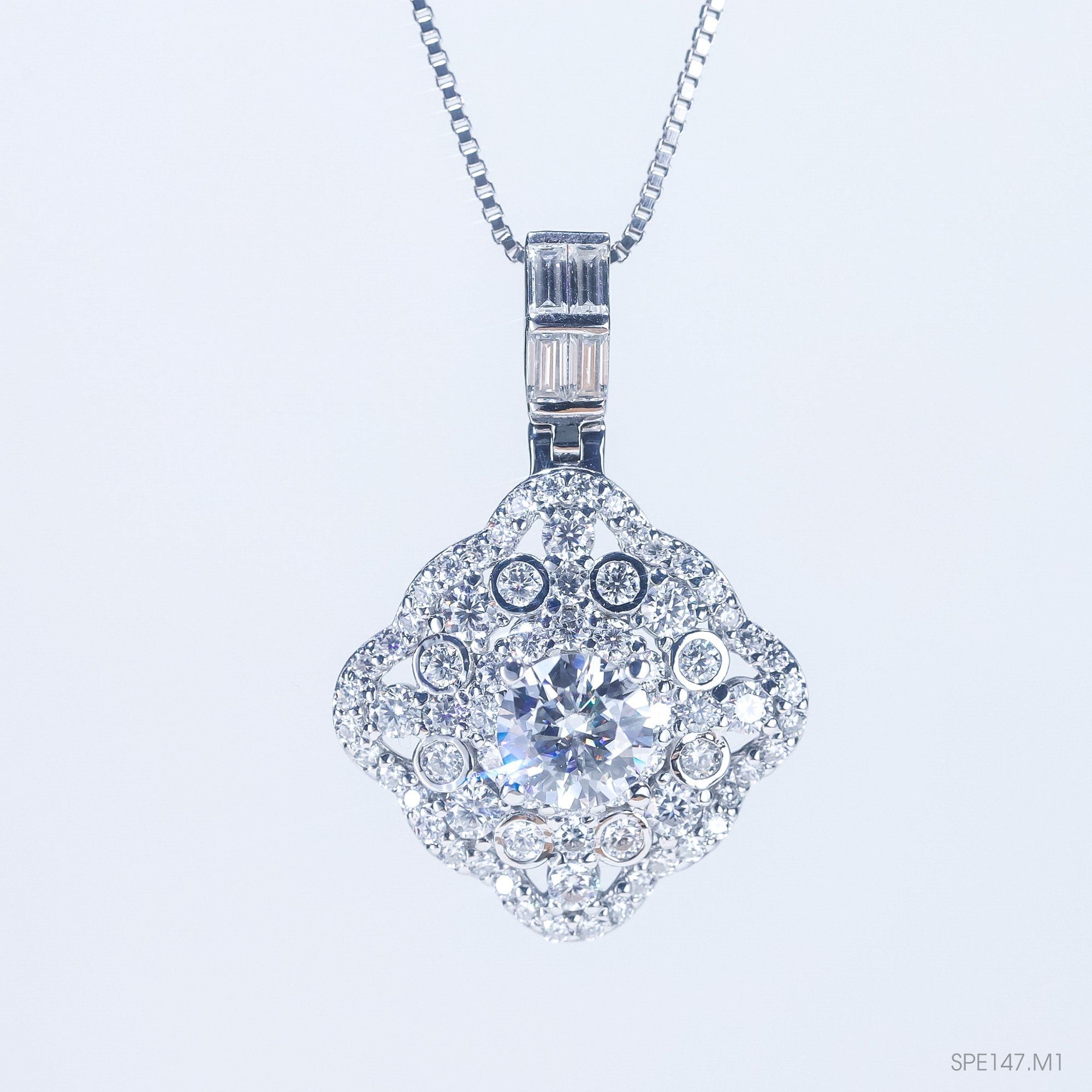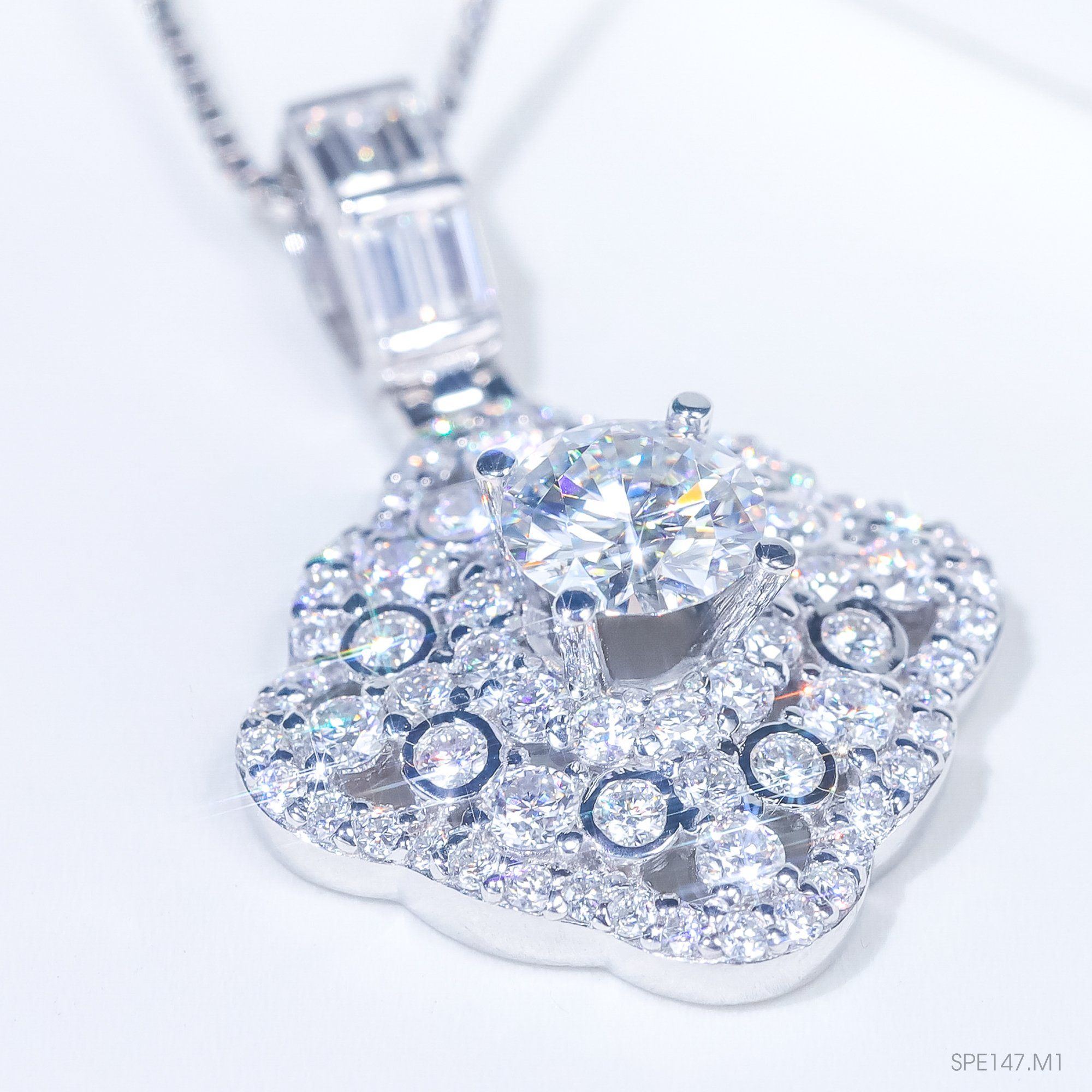 Thông tin sản phẩm: - Chất liệu: Bạc S925 cao cấp, phủ xi bạch kim chống xỉn màu - Đá chủ: Moissanite độ sáng 9.25/10 gần như kim cương - Đá tấm: Moissanite 0.8 - 2.5 mm - Thiết kế: Mặt dây phù hợp cả trang phục hàng ngày và sự kiện